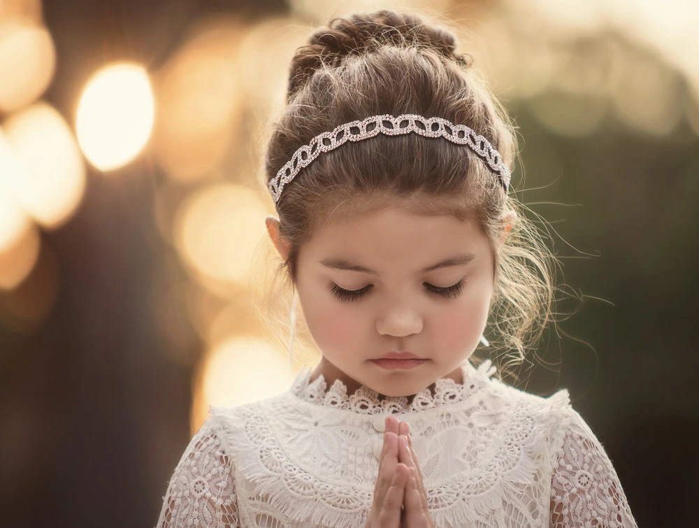 This gorgeous headband will not disappoint! This headband is just the right touch of sweet sparkle to match our dresses. Self tie ribbons keeps it perfectly placed a top little noggins 🙂