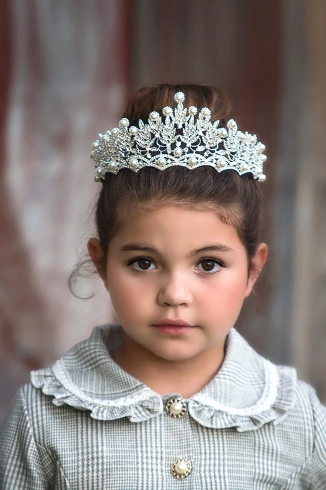AMAZING! This is no ordinary tiara. Jewels and pearls galore make up this high quality, luxe tiara. Pair this with one of our dresses or dress up items and she will be the belle of the ball. These are high quality metal tiaras, truly special keepsakes for years to come. Alloy metal.