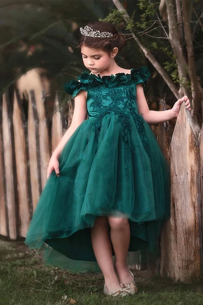 This gown is STUNNING in person. You won’t believe you paid so little for such luxury. The soft bridal satin bodice is covered in gorgeous lace details. The hi-lo skirt is filled with bountiful layers of ethereal tuling, perfect for the girl and her twirl! Laser cut flower details grace the shoulders and neckline for the perfect finishing touch on what is the most perfect dress! Small satin covered elastic shoulder straps keep everything perfectly in place. 100% poly self, 100% soft cotton lining. Fully lined, back zip. Machine wash, hang dry.