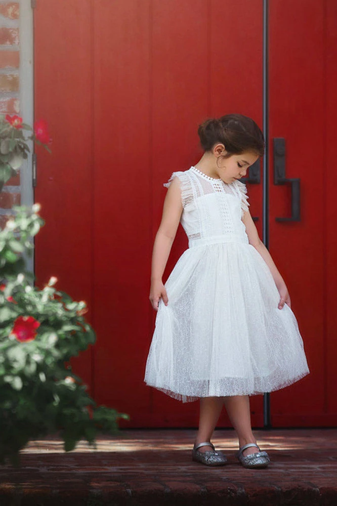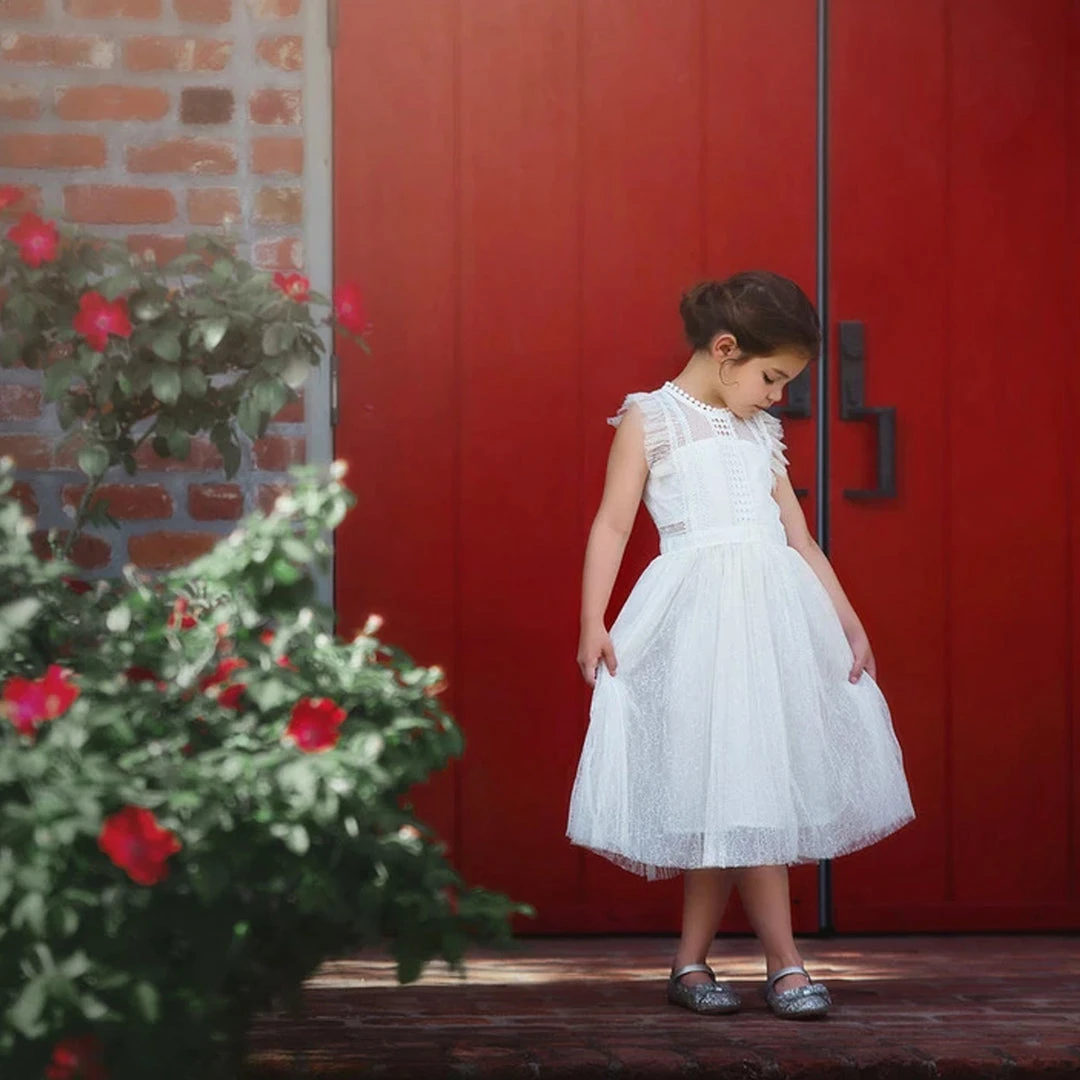 This dress has so many feminine details, it will knock your socks off. Soft lace with details galore, grace the bodice, while a sweet grosgrain ribbon finishes off the waistline. The gathered full skirt is perfect for twirling. This dress is fully lined with soft cotton and zips in back. Machine wash, hang dry.