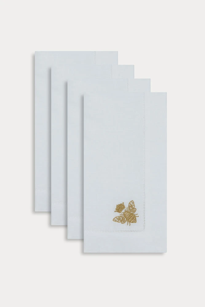 TRISH SCULLY HOME ITALIAN LINEN BEE EMBROIDERED NAPKIN SET OF 4