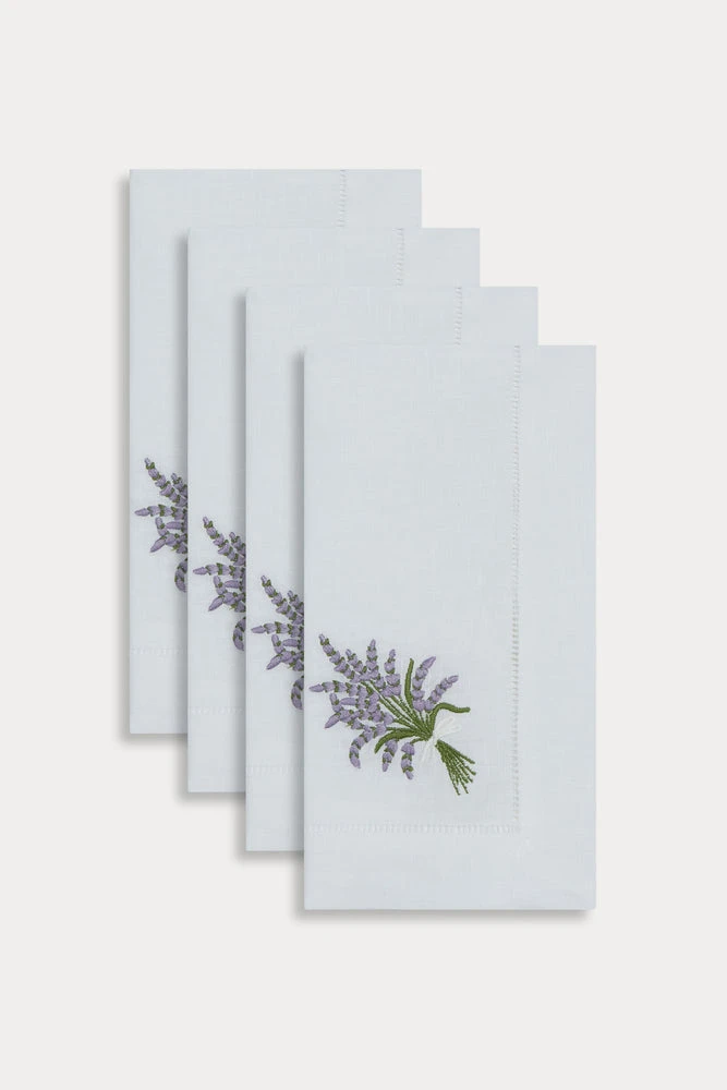 TRISH SCULLY HOME Mother’s Day Gift Guide ITALIAN LINEN LAVENDER EMBROIDERY NAPKINS, SET OF 4