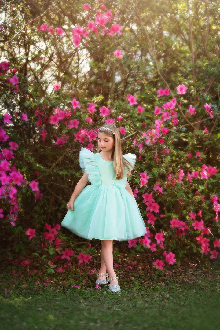 Once of our most sought after dresses of the season, our Milly dress will not disappoint! Voluminous tuling and satin galore, this dress has all the bounce and twirl a girl could want. The sheer back adds just the right touch of formality. Soft fabrications, fully lined and never itchy, this dress will have all eyes on her. Fully lined, back zip. Machine wash, hang dry.