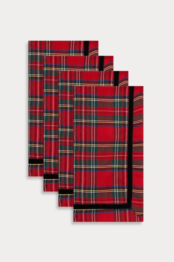 These classic and timeless Royal Stewart tartan napkins will be a holiday favorite for years to come. Trimmed with black velvet for just the right touch of elegance. These are easy care, no iron and no fuss.