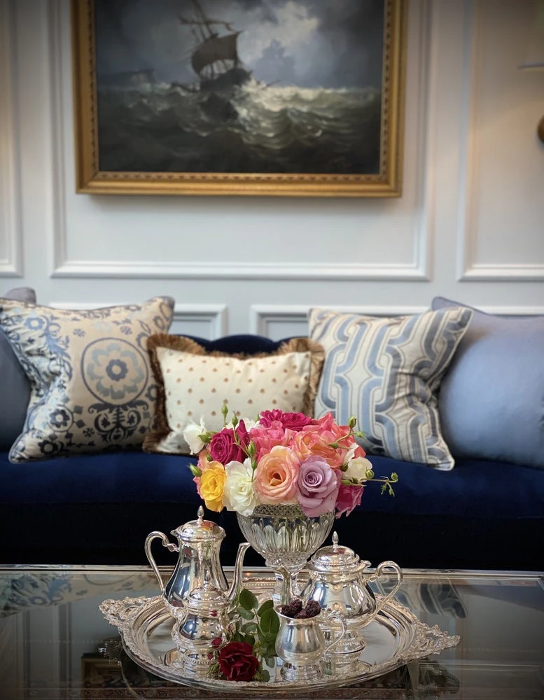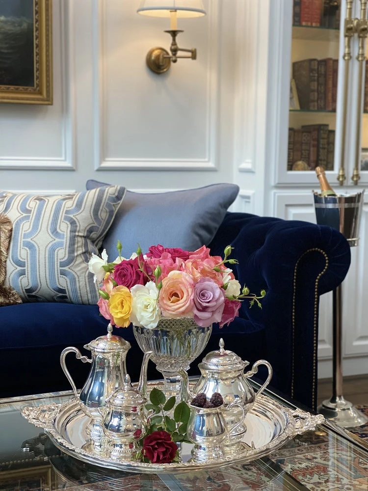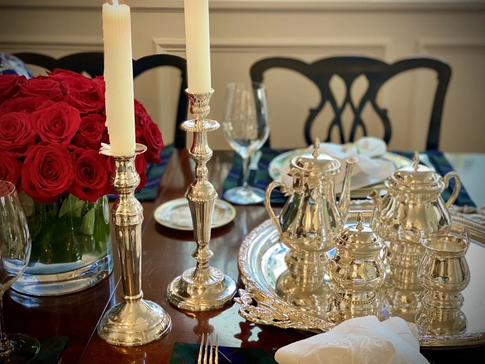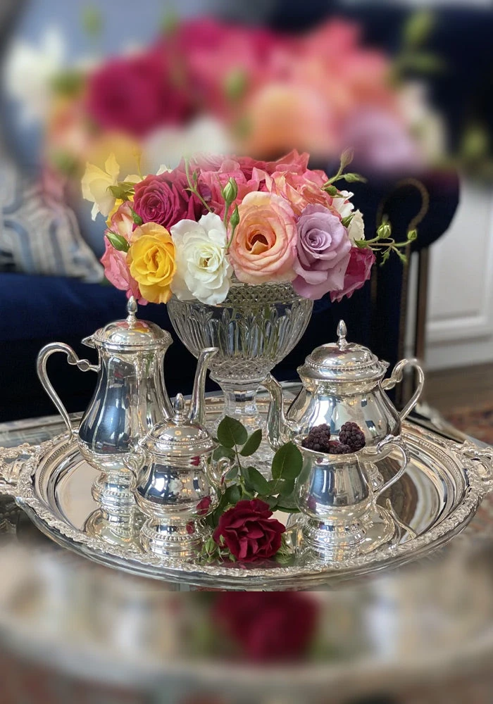 Crafted by the same hands that make silver for British royalty, our silver plated tray is truly fit for a queen. Elegant handles and details make this piece a show stopper. Multiple microns of silver plating and a solid brass core, make for an incredibly durable and valuable piece. You won’t believe you paid so little for such luxury. 23″ long x 19″ wide 1 1/4″ tall.