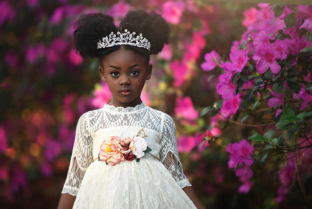 This vintage inspired lace frock is absolutely stunning in person. The color is a dreamy white and photographs amazing. The lace is soft, not scratchy and has a French eyelash edging, creating a perfect touch of vintage whimsy. The dress is fully lined with soft cotton and has a back zipper. The floral braided rope belt is completely removable and self ties in back for just the right touch of sweetness. 100% poly self, 100% soft cotton lining. Machine wash, hang dry.
